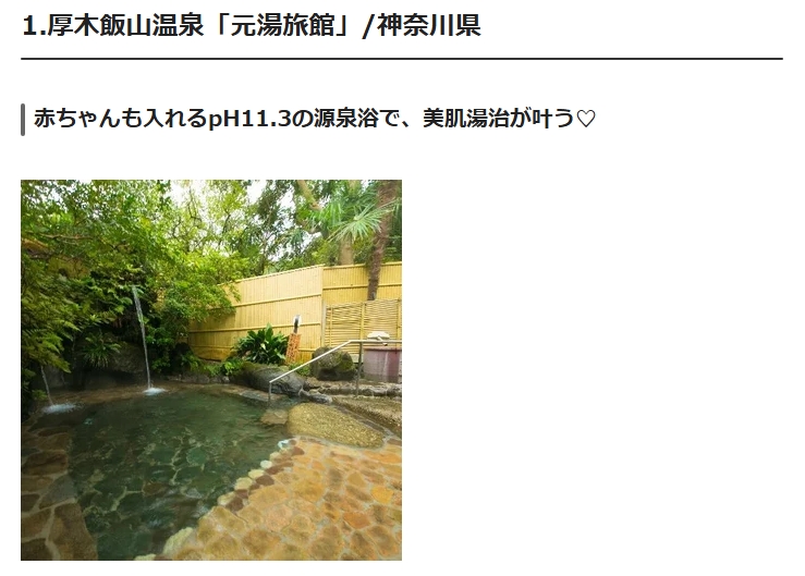「元湯旅館」は、江戸時代から湯治場として親しまれてきた神奈川県・厚木の山里にある和風旅館。新宿駅から特急「ロマンスカー」で約45分、本厚木駅から宿の送迎バスを利用でき、都心から約1時間弱で到着できるので忙しい大人女子におすすめの旅先です。と予約サイト『icotto(イコット)』さんで紹介していただきました。