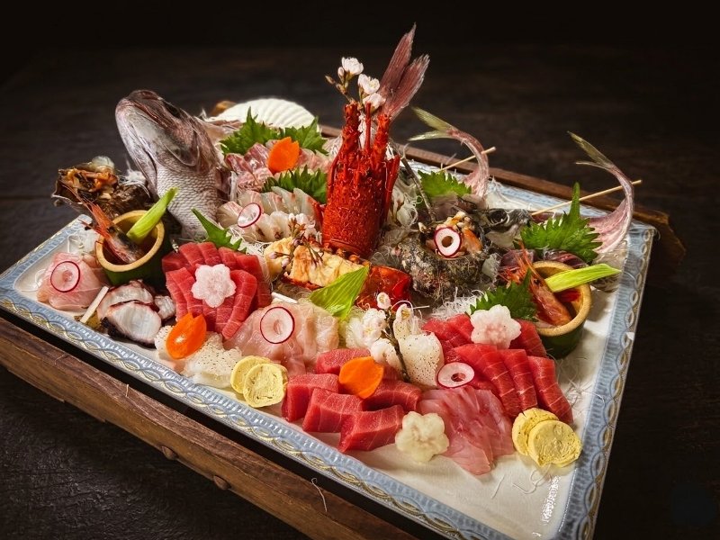 当館自慢の別注料理「刺身盛り合わせ」です。その日に仕入れた新鮮な海の幸を、一番美味しい状態で。伊勢海老や真鯛など、目にも鮮やかな彩りは、お祝いの席やご自分へのご褒美にぴったりです。一献傾けながら、心ゆくまで旬の味覚をお楽しみください。