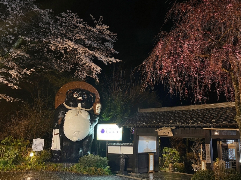 湯上がりに、温まった体のまま夜風に吹かれて眺める夜桜――。